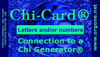 To establish a structural link from your Chi generator® or Chi-Card® to yourself, you can use the Chi-Card®: 1. Simply print out two of the blank Chi-Card® on the left - the one on top. 2. Write some letters or numbers into the green rectangle and write the identical thing into the rectangle of the second card. Instead of numbers and letters or your name, you can use a design, of course. Important is that whatever you are using, it should be individual, or unique. To test for transfer: put one of these chi cards next to your Chi generator and put the second one on a flat surface, then proceed as in the transfer tests. Naturally you can make your own Chi-Card, with a background that you design, etc. The card on the left top is there to make things easier for you and/or to give you an example of how you can make your own. For You, the Chi-Card® Secures a Continuous Supply of Chi Energy, i.e., life force, with all its Benefits! Your credit-card size Chi-Card® is energy in your wallet !!! In fact, with this continuous extra powerful transfer of Chi Energy, you can now have all the energy you need to begin taking control of sports, fitness, weight control, money, profession, business, relationships, and life itself! As a natural consequence of the invention of the Orgone Generator®, Karl Hans Welz was able to explain scientifically any action at a distance or perception at a distance. Consequently, our understanding of manifestation techniques, ESP, remote viewing, shamanism and miracles will never be the same again, and meanwhile entirely new technologies have evolved from this new scientific understanding of life force, or Chi Energy. Transfer of orgone energy (chi energy, life force) at a distance, which was practiced by humans throughout their history, can now be understood as a scientific fact. It is the transfer of life force, or orgone energy with the help of identical or equivalent structures: structural links. Based on this science, Karl Hans Welz created equipment to use life force for the transfer of signals across the Atlantic. As expected, no amplification equipment was needed, i.e., life force transferred with full force even at that disctance. Your Chi-Card® transfers orgone energy from one of your Chi-Generators® to wherever you want it in the same way as do the TC 99 and other orgonite®-based transfer units. The difference is that, unlike orgonite®, the Chi-Card® does not amplify the life energy. The image on the left shows you how you can use your chi-card® to transfer the energy of supplements into water or any other drink. |